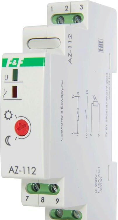 Принцип работы основан на измерении уровня освещённости фотодатчиком (встроенным или выносным). Порог включения регулируется потенциометром.